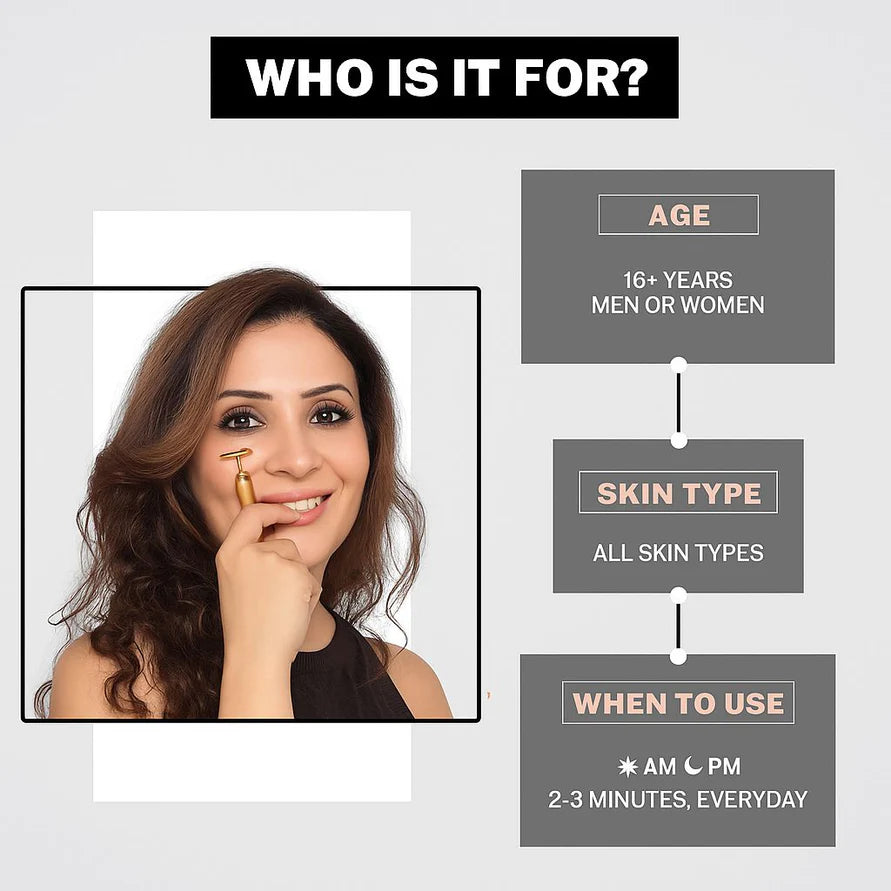 24K Gold Energy Beauty Bar Electric Facial Massage Roller